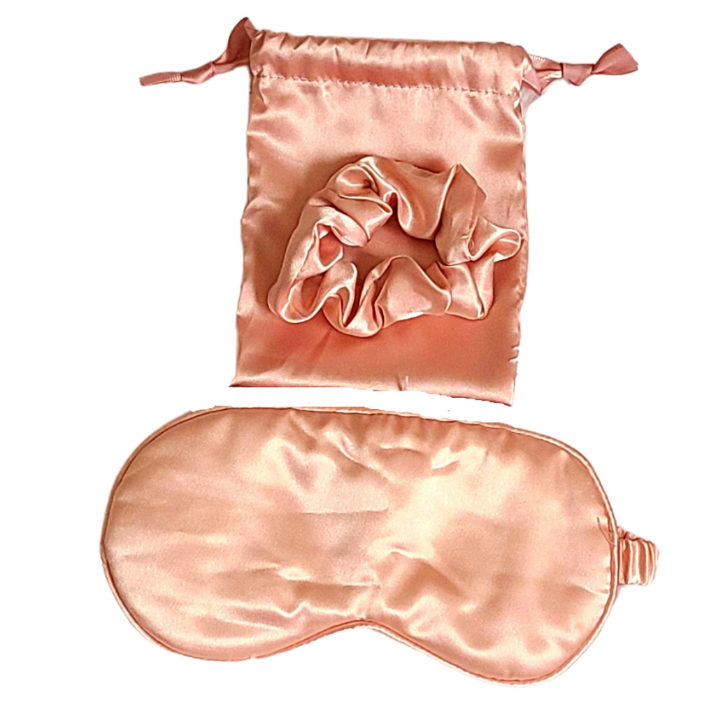 We all want to sleep well and be relaxed, so we have created this perfect set for you! The mask and scrunchy have this beautiful silk material. These pair perfectly together, we also include a cute baggie with each!